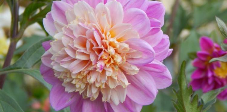 Георгин Ламбада (Lambada) – это изысканный сорт, который привлекает внимание своим необычным цветением. Его цветки имеют темную сердцевину, окруженную кремовыми или желтыми лепестками, которые переходят в розовые края, создавая эффект "юбочки". Диаметр цветков достигает 15 см, а высота стебля может вырастать до 100 см.