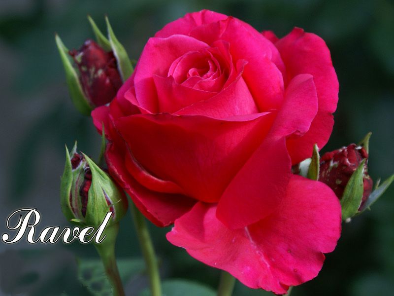 Саженец чайно-гибридной розы Равель (Ravel) представляет собой великолепное растение с яйцевидными красными бутонами, которые раскрываются в крупные цветки с 17-25 лепестками. Цветки имеют насыщенно-розовый оттенок с бархатистой внутренней стороной и атласной внешней. Куст узкий, вертикальный, достигает высоты до 1,8 метра и отличается густой листвой. Листья глянцевые, от средне- до темно-зеленого цвета. Шипы плоские, вогнутые, длиной около 7 мм, с красноватым оттенком.
