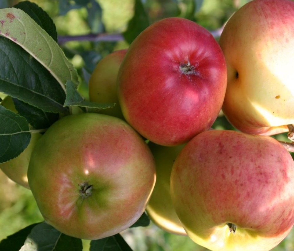 Яблоня Прима – это раннеосенний сорт, который отличается сильным ростом и густой, овальной кроной. Плоды имеют средний размер, весом от 140 до 160 граммов, и округлую форму. Вначале они покрыты тонкой кожицей желто-зеленого цвета, которая со временем приобретает яркий румянец. На вкус яблоки кисло-сладкие, сочные и ароматные.